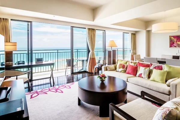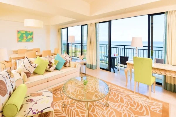 クラウンオーシャンスイート(120㎡)は、ロイヤルよりもさらに広いリビングスペースを備えた贅沢な客室。
